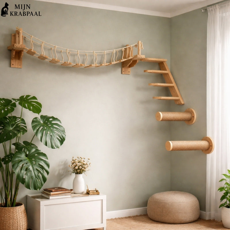 Muurbevestigde Kattenboom Collectie - Hangende Brug en Muurvoerbak - AcroChat