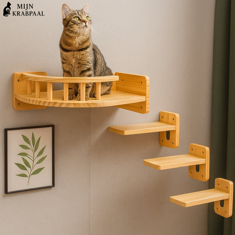 Als je van dit soort producten houdt, zul je dol zijn op deze Muurbevestigde Houten Kattenboom - Hangende Brug Cat Avontuur. In hetzelfde thema vind je onze zeer populaire Houten Krabpaal.