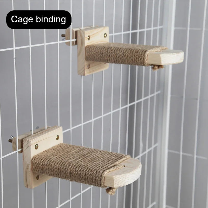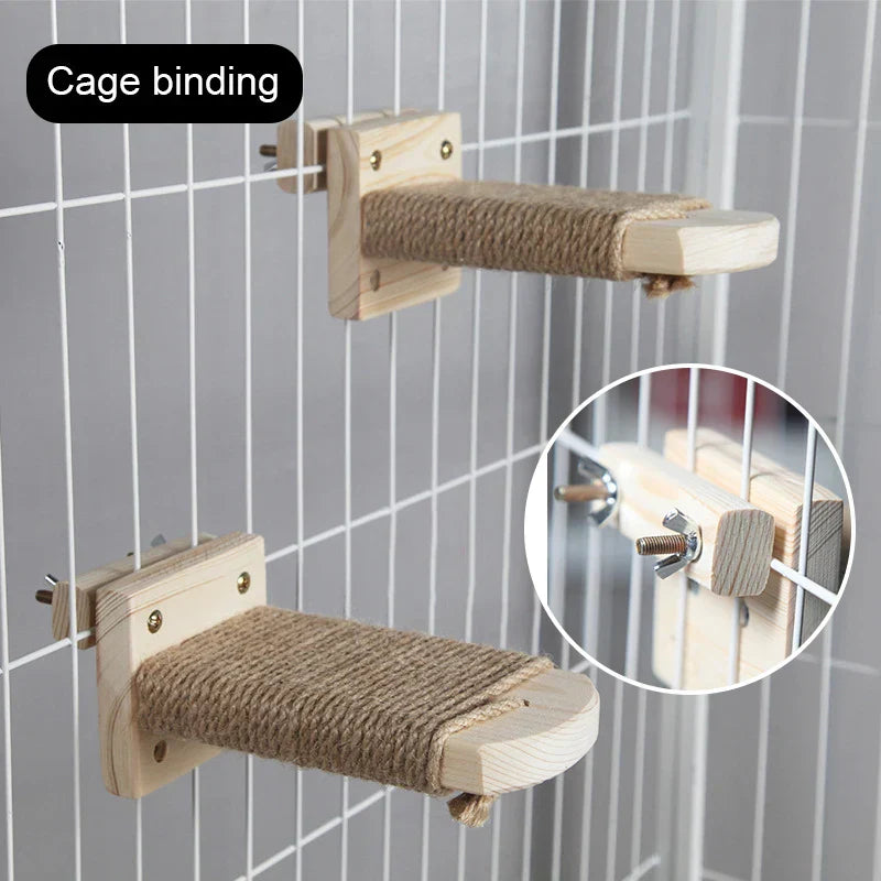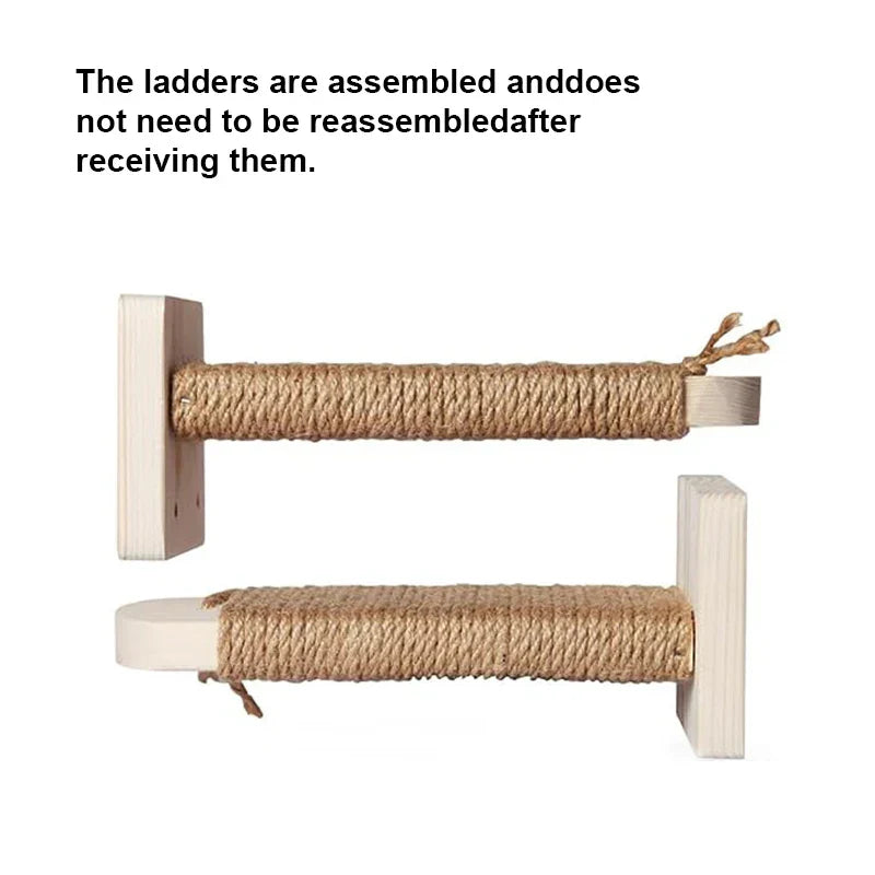 Je pakket bevat een massief houten muurkrabpaal trap met treden bedekt met natuurlijk sisaltouw, klaar om je kat urenlang speel- en ontspanningsplezier te bieden.